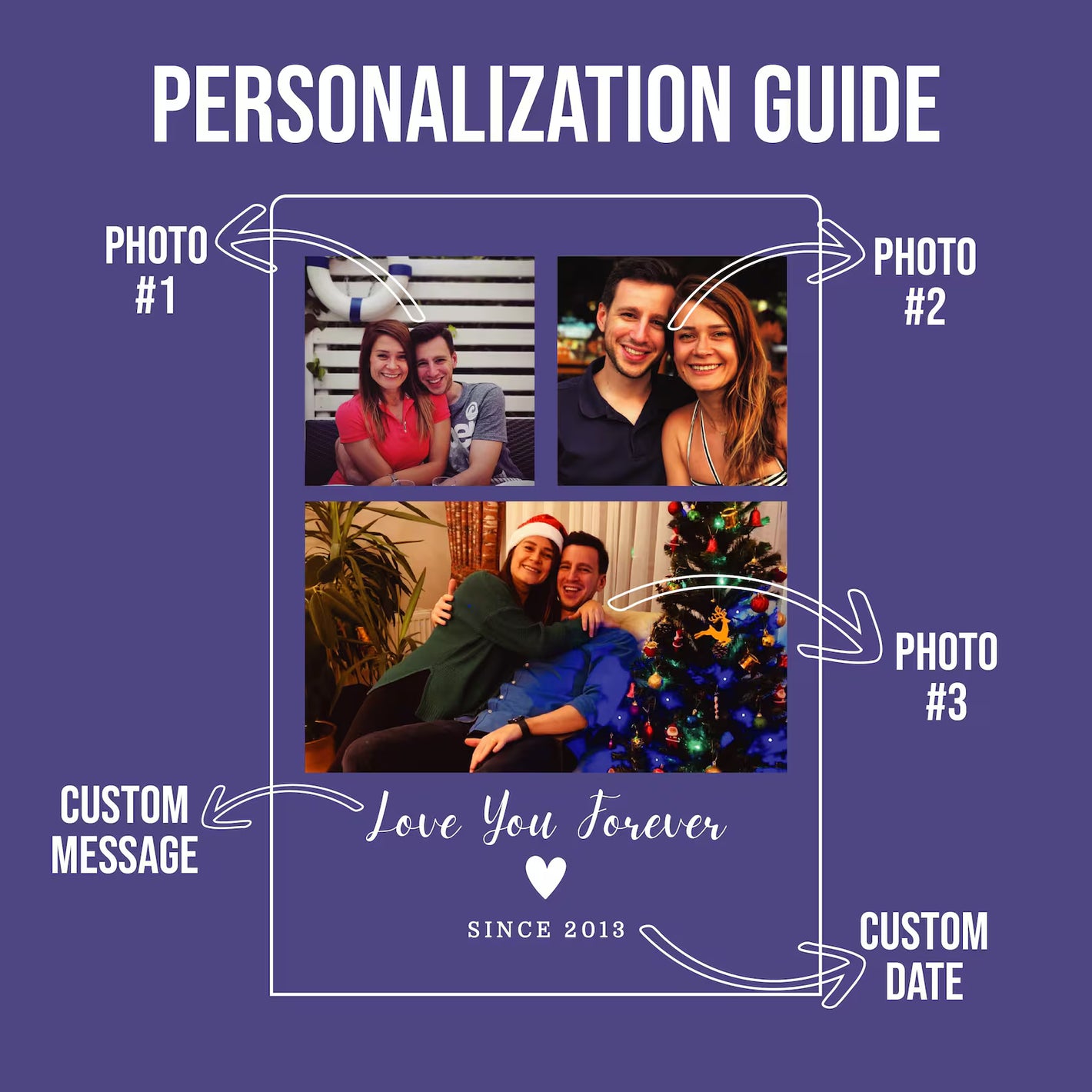 Choose your favorite pictures and upload it on the product page. You can also add a name or short message.