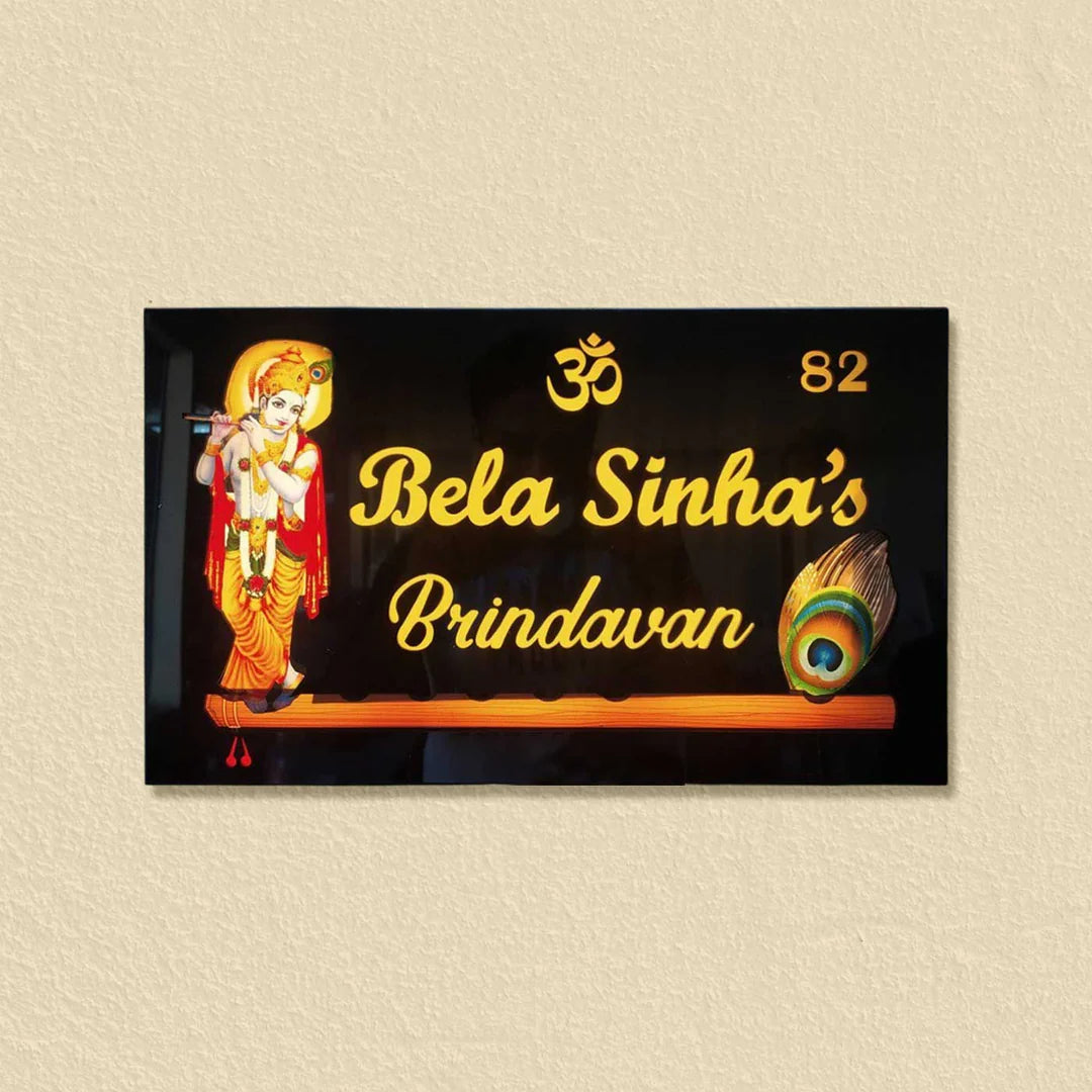 Personalized Colorful Krishna Theme Acrylic LED Name Plate