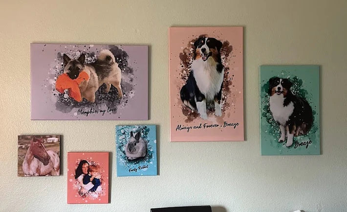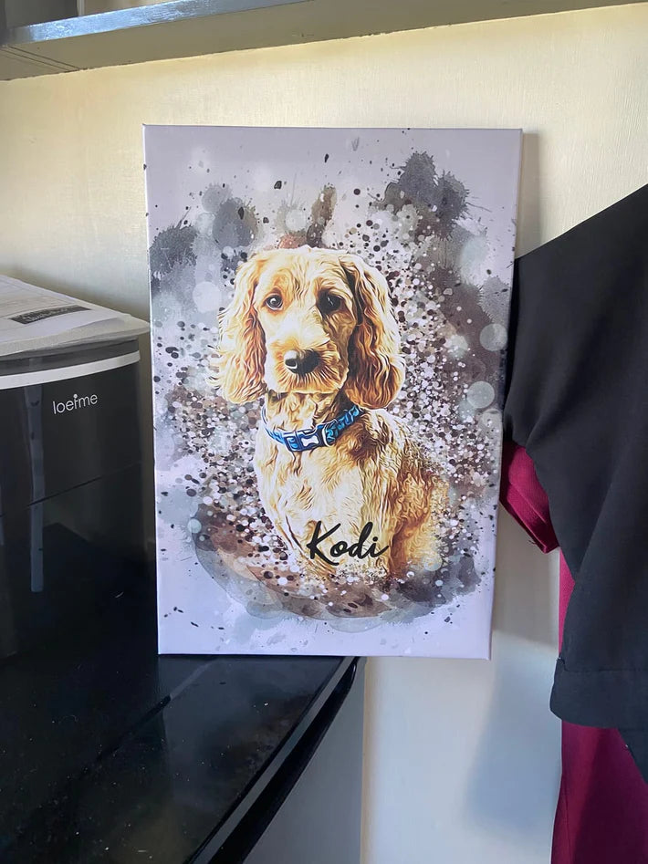 Turn your dog's most cherished moments into a timeless piece of art! Our personalized dog canvases are crafted with high-quality materials, ensuring vibrant colors and lasting durability. Whether it’s a heartwarming portrait, a playful illustration, or a custom quote alongside your pet’s name, we bring your vision to life. Perfect as a gift or a special keepsake for any pet lover!